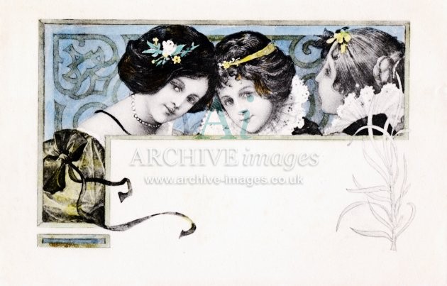 Artistic images from the Art Nouveau period of the late 19th and early 20th centuries, mainly from original old postcards