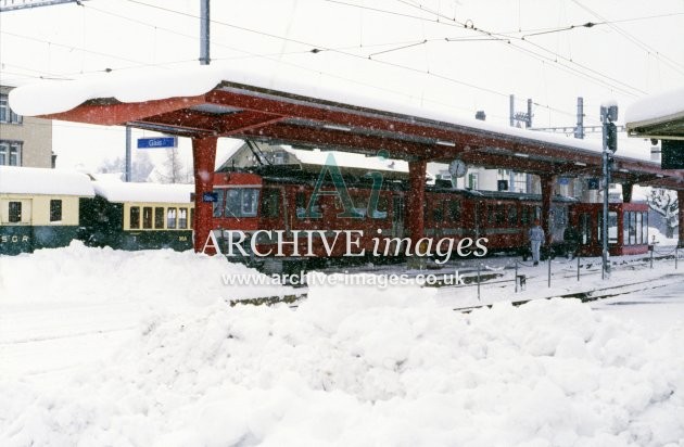 Images of the railways of Switzerland from the 19th, 20th & 21st centuries, including stations, goods yards, signal boxes, locomotive depots, viaducts and general railway scenes, construction views, locomotives, wagons coaches and rolling stock, signals and railway staff.