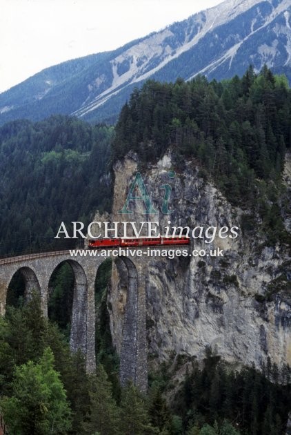 No 612 Thusis crossing Landwasser Viaduct on 4.6.1992