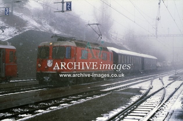 Images of the railways of Switzerland from the 19th, 20th & 21st centuries, including stations, goods yards, signal boxes, locomotive depots, viaducts and general railway scenes, construction views, locomotives, wagons coaches and rolling stock, signals and railway staff.