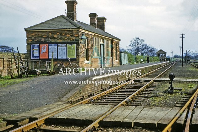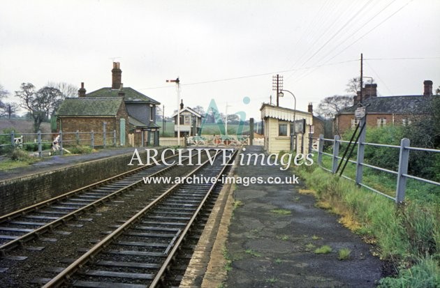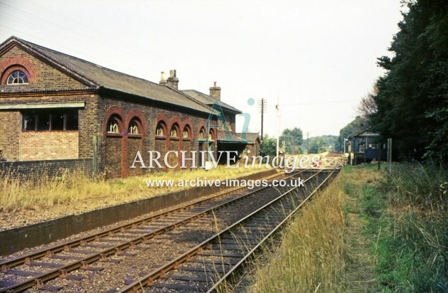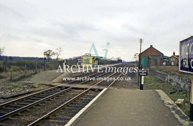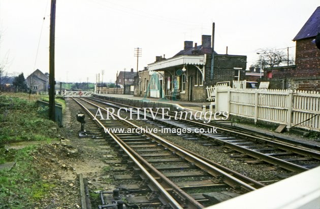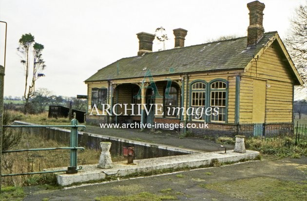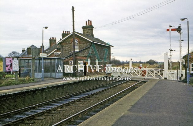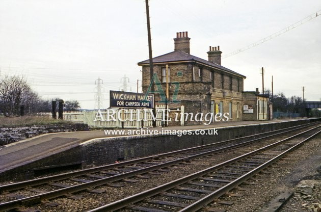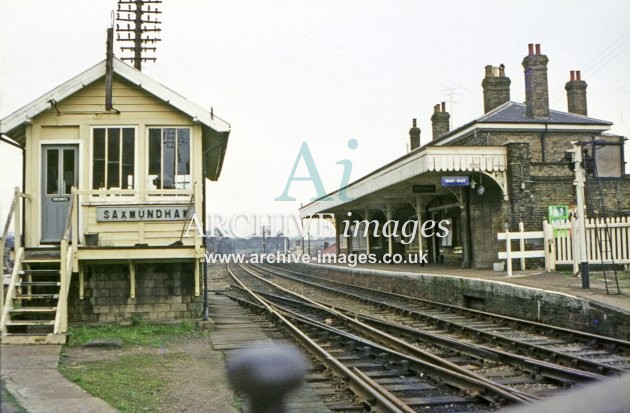 Historic colour images, mostly from 35mm colour transparencies, of railway stations, signal boxes, goods yards, engine sheds, tunnels, bridges and viaducts in the County of Suffolk, in the British Railways period from the late 1950s to the mid 1970s.