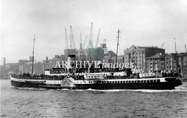 Historic images of paddle steamers from the 19th and 20th centuries, including those belonging to P & A Campbell, Cosens, White Funnel Fleet, Red Funnel Fleet and railway companies