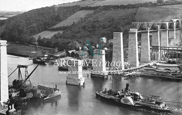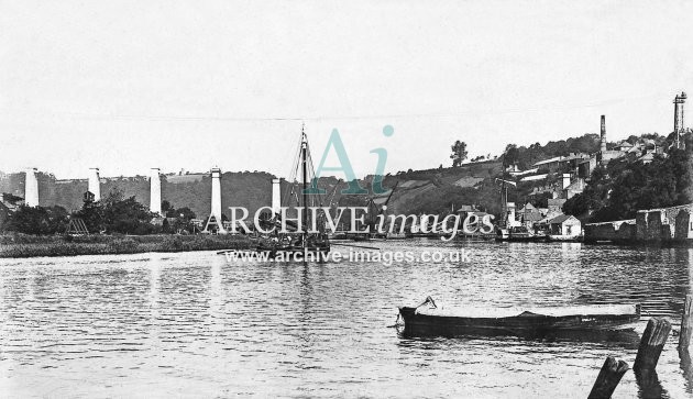 The Ouse Bridge at Bedford circa 1908, with steam pleasure craft about to pass through.