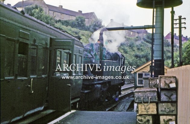 An unidentified 45xx tank runs round its train at Helston circa 1962
