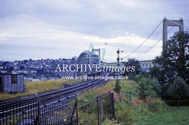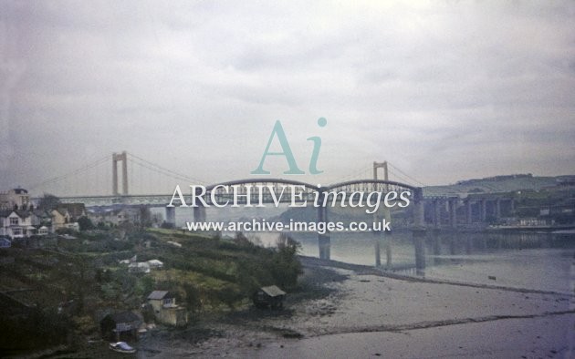 Brunel's famous bridge viewed from a Plymouth bound train on 6th January 1965