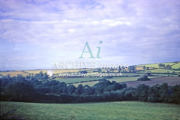 A panoramic view looking NE from near Fowey Consuls circa 1962, with a goods train presumably on the main line east of Par.