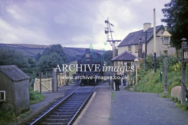Standard tank No. 41272 arriving at Nantstallon Halt, near Bodmin, circa 1960