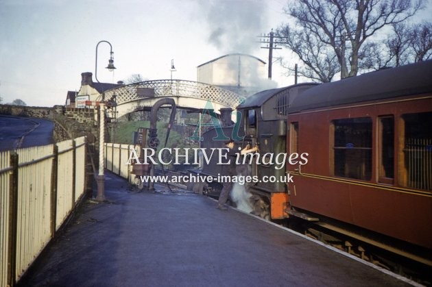 No 4588 taking water at Lifton on 3rd April 1962