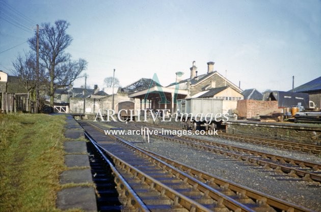 The closed ex-GWR station at Launceston in goods use on 3rd April 1962. Passenger services were withdrawn from here and transferred to the ex-LSWR station in 1952
