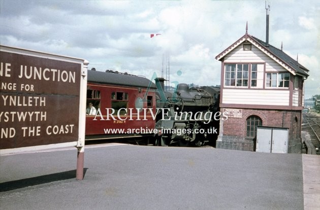 Historic colour images, mostly from 35mm colour transparencies, of the railway stations, signal boxes, goods yards, engine sheds, tunnels, bridges and viaducts of Montgomeryshire, in the British Railways period from the late 1950s to the mid 1970s.